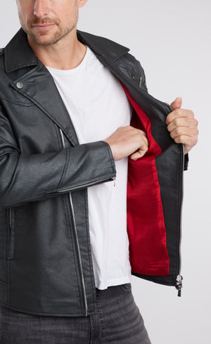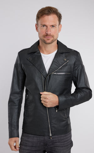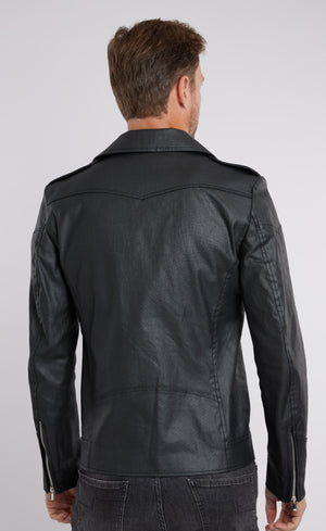Mit dem Fenriswolf aus der nordischen Mythologie als Paten geht die gleichnamige Bikerjacke ihren Weg. Speziell beschichteter Stretchdenim punktet mit coolem Lederdesign. Das ist zu 100 Prozent vegan. Darüber freut sich nicht nur die Fauna, sondern auch die frisch gebackenen Easy Rider. High-end Schrägzip mit geschliffenen Elementen, washed-out Optik und Biker-Schnitt perfektionieren den Look und setzen angesagte Akzente.